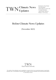 About the Book This is a compilation of 22 News Updates prepared by the Third World Network for and during the United Nations Climate Change Conference – encompassing the 30th session of the Conference of the Parties to the UN Framework Convention on Climate Change (COP 30), the 20th session of the Conference of the Parties serving as the meeting of the Parties to the Kyoto Protocol (CMP 20), the 7th session of the Conference of the Parties serving as the meeting of the Parties to the Paris Agreement (CMA 7), as well as the 63rd sessions of the Subsidiary Body for Scientific and Technological Advice (SBSTA 63) and the Subsidiary Body for Implementation (SBI 63) – held in Belém, Brazil, on 10–22 November 2025. Contents Note Belém Climate News Updates 1. Saving multilateralism is not enough for saving the planet and the poor 2. Multilateralism in the balance: Expectations from COP 30 3. “We are moving in the right direction but at a wrong speed” – President Lula 4. Strong and united call from developing countries for a just transition mechanism 5. Divergences continue over global stocktake negotiations 6. Loss-and-damage negotiations advance work on long-overdue WIM review 7. Work on the Global Goal on Adaptation advances with negotiations on draft text 8. Unilateral trade measures hinder climate ambition – say developing countries 9. COP 30 President outlines mode of work for final week of pivotal Belém talks 10. No to imposing national mitigation targets 11. Belém countdown: Climate talks race to the finish 12. China calls for “implementation roadmap” for delivery of new finance goal 13. COP 30 ends with delicate Belém Political Package amid last‑minute drama 14. COP 30 secures breakthrough on a “just transition mechanism” 15. Third WIM review strengthens loss and damage pillar in the climate regime 16. Climate talks advance Non-Market Approaches Platform for mitigation projects 17. Compromises shape path forward on global stocktake at Belém climate talks 18. Belém “Mutirão” decision: A delicate balance between implementation and ambition 19. COP 30 marks milestone on adaptation agenda 20. Consensus reached on TIP modalities but ambition falls short 21. “Veredas Dialogue” to build on Article 2.1(c) dialogue, with review in 2028 22. COP 30 stalemate: No agreement on Adaptation Fund transition to Paris Agreement