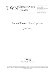 About the Book This is a compilation of 14 News Updates prepared by the Third World Network for and during the United Nations Climate Change Conference – encompassing the 58th sessions of the Subsidiary Body for Implementation (SBI 58) and the Subsidiary Body for Scientific and Technological Advice (SBSTA 58) – held in Bonn, Germany from 5 to 15 June 2023. Contents Note Bonn Climate News Updates 1. What to expect at the intersessional climate talks 2. UNFCCC bodies launch work, with agendas pending adoption 3. Address pre-2020 gaps and equity in global stocktake – say developing countries 4. Equity and justice must be central to just transition pathways, say developing countries 5. Parties provide reflections on outcome of the Global Stocktake 6. Need for broad approach to just transition pathways – say developing countries 7. Progress of work at Bonn climate talks, pending agenda adoption 8. Global Stocktake on “Integrated and holistic approaches” draws sharp reactions from China and India 9. Efforts continue to break deadlock over adoption of agendas of Subsidiary Bodies 10. Developed countries chided over attempts to renegotiate climate treaties 11. No consensus on host agency for Santiago Network secretariat 12. Bonn climate talks foreshadow difficult negotiations in Dubai later this year 13. Tough negotiations over just transitions, response measures and global stocktake 14. IPCC scenarios project highly unequal future between North and South