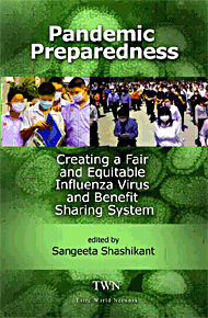 Materials and Fair and Equitable Benefits Sharing (Between Appendix 4: “Standard Terms and Conditions for the Transfer and Use of Influenza Biological Materials and fair and equitable benefit sharing” (A/PIP/IGM/7): Proposal from the African Region Appendix 5: Interim Statement of the Intergovernmental Meeting on Pandemic Influenza Preparedness: Sharing of influenza viruses and access to vaccine and other benefits PRICE POSTAGE Third World countries Other foreign countries US$12.00 US$6.00 (air); US$2.00 (sea) (For orders of more than 3 copies, please write in for reduced postal rate) How to Order the Book Visit our TWN Online Bookshop or contact Third World Network at 131 Jalan Macalister, 10400 Penang, Malaysia. Tel: 604-2266159 Fax: 604-2264505 Email for further information. |
