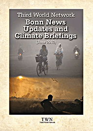 About the Book This is a collection of 30 News Updates and a Briefing Paper prepared by the Third World Network for and during the recent United Nations Climate Change Talks – the thirty-eighth sessions of the Subsidiary Body for Implementation (SBI 38) and the Subsidiary Body for Scientific and Technological Advice (SBSTA 38), as well as the second part of the second session of the Ad Hoc Working Group on the Durban Platform for Enhanced Action (ADP 2-2) – in Bonn, Germany, from 3 to 14 June 2013. Contents Bonn News Updates 1. 400 ppm: Climate Threshold Crossed, but No Solution in Sight! 2. Adoption of UNFCCC’s Subsidiary Body on Implementation Agenda Delayed 3. SBSTA Begins Work on Wide Range of Issues 4. UNFCCC Principles Must Guide Work of IMO and ICAO – Say Developing Countries 5. Durban Platform: Parties Reiterate Positions 6. SBI Chair Updates Plenary Briefly and Suspends Session Again 7. Durban Platform: Concerns Expressed over Direction of Discussions 8. REDD+: Discussions Begin on Non-market-based Approaches 9. ADP: Developed Countries Can Close ‘Emissions Gap’ by Raising Pledges 10. ADP: Parties Continue Exchange of Views on 2015 Agreement 11. Response Measures: North-South Divergence Continues 12. Review: Developed Countries Determined to Narrow Scope 13. Work of SBI Delayed; Russia Explains Proposal 14. Stormy Start over Developed Country Mitigation 15. ADP: Agreement Must be Based on Equity, Applied to Science 16. ADP: Parties Continue Exchange of Views on Addressing the Ambition Gap 17. UNFCCC Body SBI in Crisis; Unable to Do Work 18. Review Collapsed Carbon Markets Before Moving on New Markets, Say Developing Countries 19. Addressing Fossil Fuels, Meeting Energy Needs 20. ADP: Divergent Views on Enhancing Means of Implementation in New Agreement 21. ADP: Call for Balanced Progress in Workstreams 22. ADP Meeting Suspended; Adopts Conclusions on Way Forward 23. SBI: Parties Express Disappointment and Call for Impasse to be Resolved 24. ADP: Call for Work to be More Focused and Party-driven 25. UNFCCC Scientific Body Decides on Key Issues 26. SBSTA: Parties Agree to Focus on Adaptation in Agriculture Outcome 27. SBSTA: Markets Discussion under Time Pressure to Move Ahead in Warsaw 28. SBSTA: Language on Drivers Puts Indigenous Livelihoods at Risk 29. REDD-plus Workshop Discusses Results-based Finance 30. REDD Workshop Highlights Need for Equitable Access and Scaled-up Finance CLIMATE BRIEFINGS FOR BONN 1 Some Key Issues for the June Climate Talks PRICE POSTAGE Malaysia RM14.00 RM2.00 Third World countries US$8.00 US$4.00 (air); US$2.00 (sea) Other foreign countries US$12.00 US$6.00 (air); US$2.00 (sea) (For orders of more than 3 copies, please write in for reduced postal rate) How to Order the Book Visit our TWN Online Bookshop or contact Third World Network at 131 Jalan Macalister, 10400 Penang, Malaysia. Tel: 604-2266159 Fax: 604-2264505 Email for further information. |