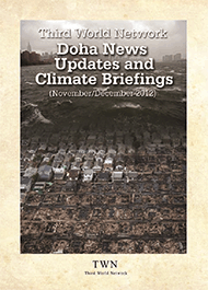 About the Book This is a collection of 29 News Updates and a Briefing Paper prepared by the Third World Network for and during the recent United Nations Climate Change Talks – the 18th session of the Conference of the Parties to the United Nations Framework Convention on Climate Change (COP18), and the 8th session of the Conference of the Parties serving as the Meeting of the Parties to the Kyoto Protocol (CMP 8) – in Doha, Qatar, from 26 November to 7 December 2012. Contents Updates 1 Climate Talks Resume, amid Weather Chaos 2 Climate Legal Regime at the Crossroads 3 Developing Countries Outline Key Deliverables for COP 18 4 Doha Must Deliver Strong and Effective Second Commitment Period, Says G77/China 5 AWG-LCA: Developed Countries Oppose Chair’s Overview Text 6 Kyoto Protocol Second Commitment Period Still Mired in Differences 7 Completion of Bali Roadmap Basis for Durban Platform Work, Say Developing Countries 8 SBSTA: Differences over Agriculture, Aviation and Maritime Transport Emissions 9 AWG-LCA: Heated Exchange at Informal Consultations 10 AWG-LCA: Disagreement over Need for Expert Group on ‘Review’ 11 AWG-LCA: ‘Various Approaches’ for Mitigation Actions Further Explored 12 Continuing Differences on REDD-plus and Way Forward 13 Climate Finance – a Major Make-or-break Issue for Doha 14 Deep Divide over Russia’s Proposal to Amend Convention 15 Unhappy First Week at Doha; Uncertainty over the Final Outcome 16 Disappointment Expressed at Informal Stocktake at Doha Climate Talks 17 AWG-LCA: Developing Countries Outraged over Lack of Text in Key Areas 18 AWG-KP: No Shift in Low Ambition, Unresolved Issues to Go to Ministers 19 AWG-KP: Outcome Document Forwarded with Brackets to CMP 8 20 A ‘Low Ambition’ Outcome in Doha 21 Durban Platform Work to be Guided by Principles of the Convention 22 AWG-LCA Concludes Its Work in Doha 23 Developing Countries Unhappy over Low Ambition in Doha Outcomes 24 Doha Decisions on Finance 25 Negotiators Buy More Time for Agriculture Discussions 26 COP 18 Outcome on Loss and Damage Opens Door for New Mechanism 27 Divergent Views over ‘Vision’ of Outcome under Durban Platform 28 Durban Platform: Way Forward on Pre-2020 Ambition 29 Response Measures: Avoidance of Negative Trade Impacts of Unilateral Measures Reaffirmed Briefing 1 Loss and Damage: Confronting and Addressing the New Burden for Developing