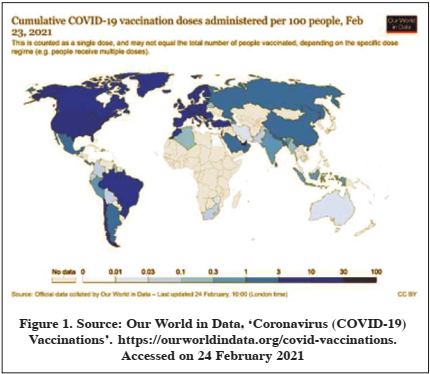 The political economy of COVID-19 vaccines Vaccine grabs, the refusal to relax patents to enable mass production, and the use of vaccines for diplomacy run the risk that poorer nations may not be protected against COVID-19 quickly enough. This will prolong the pandemic, even for the richer nations. Jayati Ghosh THE COVID-19 pandemic has been unusual in several ways: the disproportionate extent to which people in rich countries (particularly in Europe and North America) have been affected; the sheer scale of the policy response for containment; and the speed and urgency of the global response. The active interest in controlling the pandemic in rich countries shaped individual national responses as well as global policy. There was a massive push for vaccine development, through large subsidies for research and development to drug companies, pre-orders of vaccines, and other support by the US, Russia, China and European countries. This led to the rapid development of multiple COVID-19 vaccine candidates and even more rapid regulatory approval to several of them. Typically, vaccines take several years to be developed and approved, partly because of extended clinical trials to check for all possible responses. But some COVID-19 vaccine candidates were given official approval in Russia and China even before the essential Phase III trials were completed. Even in the US and Europe, regulatory processes were accelerated, sweeping aside the usual demands for complete data and without checking for possible side-effects. Despite such proactive policy, the production and distribution of COVID-19 vaccines have exposed and intensified global inequality. Three features stand out: blatant vaccine grab by rich countries; protection of patent rights by governments in advanced countries, which prevents wider production of vaccines; and the use of vaccine distribution to promote both nationalism and diplomatic ‘soft power’. The great vaccine grab It seems obvious that a pandemic can be overcome only when it is overcome everywhere. The delayed vaccination of people across the world increases the possibility of virus mutation, reducing the ability to control the pandemic even in rich countries that have bagged vaccines. Prolonged fear of infection, because of inadequate vaccination, affects economic prospects, inhibiting and delaying global economic recovery. These risks are so great that rich countries would still benefit even if they decided to pay on their own for vaccinating all of the world’s population. An ‘every-country-for-itself’ approach is irrational and even counterproductive. Yet that is exactly what has happened. When three major vaccine candidates (from Pfizer-BioNTech, Moderna and AstraZeneca) were approved in the US and Europe, rich countries scrambled to lay claim to vaccine doses, confirming that wealthy countries and individuals would monopolise early doses of any effective vaccine. As a result, by late February 2021 COVID-19 vaccinations were heavily concentrated in the developed world (Figure 1). This need not have occurred. The COVID-19 Vaccines Global Access Facility (COVAX), led by the World Health Organization (WHO), the Coalition for Epidemic Preparedness Innovations, and Gavi, was established precisely to prevent this outcome, to prevent hoarding by rich countries and ensure access for the world’s poor. COVAX aims to accelerate COVID-19 vaccine development, secure doses for all countries, and distribute those doses fairly, beginning with the highest-risk groups. By early 2021, 190 countries, representing most of the world’s population, had joined. In February, the United States (which had been kept out by former president Donald Trump) also joined. Higher-income and middle-income countries will have access to the vaccines in the COVAX list and pay for their doses individually. The 92 lower-income member countries are to receive their doses free of charge. The COVAX plan is to distribute vaccines in two phases. In the first phase, all participating countries would receive doses proportionate to their populations, beginning with enough doses to immunise the 3% of their population at highest risk, especially frontline workers in health and social care. Additional doses would then be delivered to cover 20% of each country’s population, beginning with others most in danger, such as the elderly and those with co-morbidities. In the second phase, vaccines would be delivered to specific countries based on how quickly the virus is spreading; whether other pathogens (like measles) are also spreading; and how vulnerable the country’s health infrastructure is to being over-whelmed. Eventually, everyone would be covered. This is a fair system, given constraints on production. But the facility still remains underfunded, thus far raising only $4 billion of its modest target of $6.8 billion for 2021. Even worse, it has not been able to purchase the vaccines required for free distribution to poor countries as much as planned. This is because the COVAX facility allows member countries to make their own separate purchases directly from pharma companies. As a result, rich countries have competed to secure bilateral deals with pharmaceutical companies outside of COVAX. Within a month of the regulatory approval being granted to the first three vaccines, advanced countries, accounting for only 14% of the world’s population, had placed orders for around 85% of the estimated entire production for 2021. Much of this was in the form of pre-orders even before regulatory approval was granted. Thirteen of the 48 firms engaged in COVID-19 vaccine development had made advance sales by mid-November 2020, promising to deliver 7.5 billion doses of vaccines, mostly to advanced countries, even before emergency-use authorisation had been granted. In some cases, this happened even before the clinical trials necessary for regulatory approval had been completed. Forty-four bilateral deals between govern